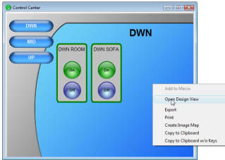 Graphic Button - Allows you to directly fire off Macros/Insteon/X10/raw formulas, etc and has an up/down graphic image associated to reflect the state of the momentary press button.